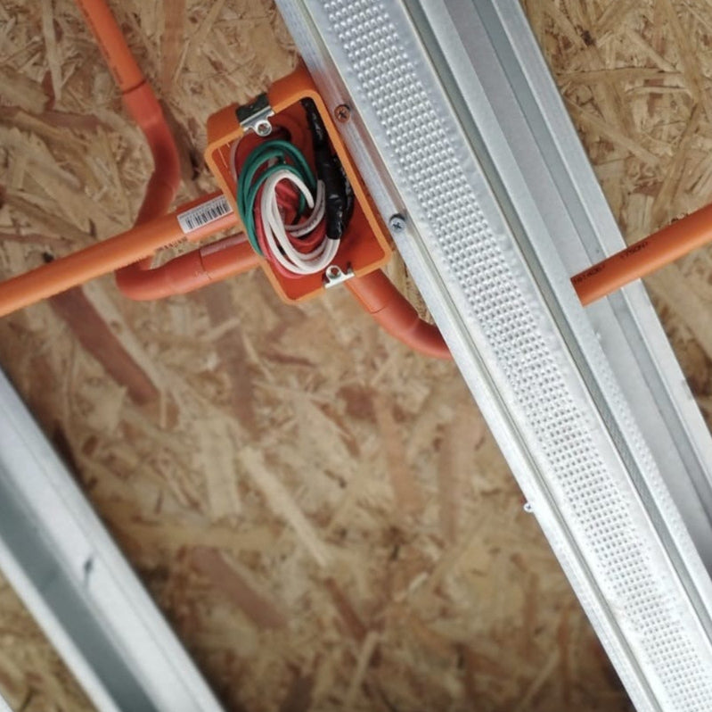 Un centro de alumbrado interior con canalización embutida corresponde a la instalación de un punto de luz controlado desde un interruptor, donde el cableado queda completamente oculto dentro de la construcción. Para esto se utilizan tuberías conduit de PVC junto con cajas de derivación, accesorios y cableado, los cuales se instalan en perforaciones o calados en muros, losas o tabiques, quedando cubiertos por las terminaciones de la obra. En algunos casos puede ser necesario retirar paneles existentes o hacer pequeñas perforaciones. La instalación estándar considera hasta 5 metros lineales desde la caja de derivación hasta el centro de alumbrado y hacia el interruptor. La factibilidad de la canalización embutida siempre se evalúa previamente en terreno y, en caso de no ser posible, se ofrecen alternativas como canalización sobrepuesta.