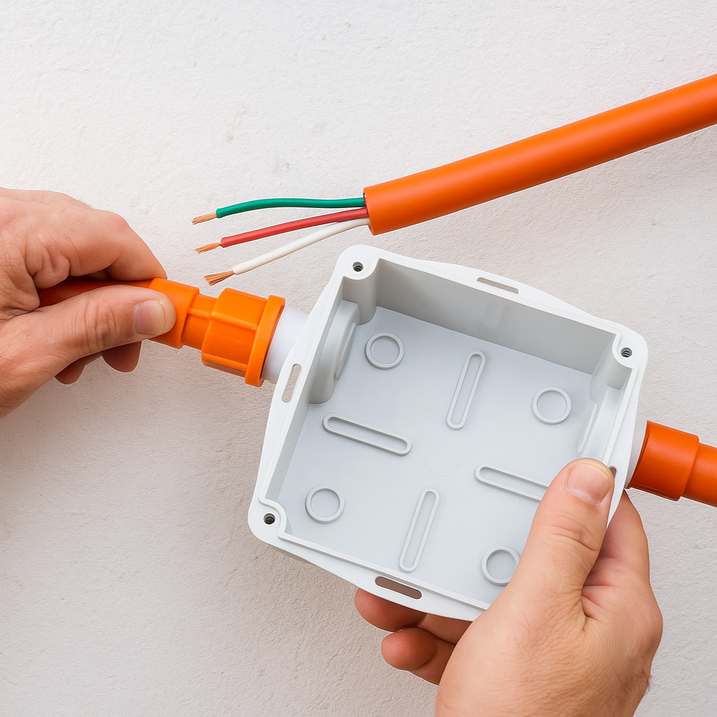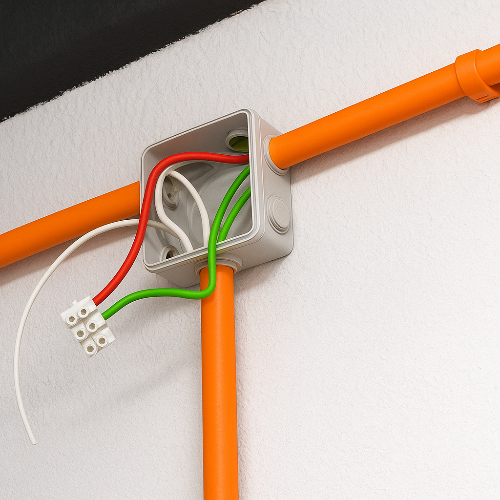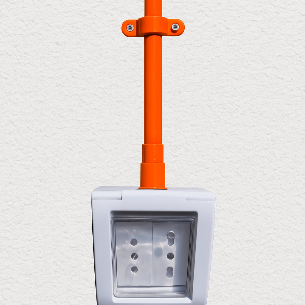 Un centro de enchufe exterior con canalización a la vista en conduit consiste en la instalación de un enchufe en espacios al aire libre, como terrazas, jardines o fachadas, donde el cableado se protege mediante tuberías rígidas de PVC (conduit) instaladas sobre los muros o superficies. Este sistema garantiza seguridad frente a la humedad y golpes, manteniendo el cableado ordenado, accesible y con un acabado limpio y resistente a la intemperie.