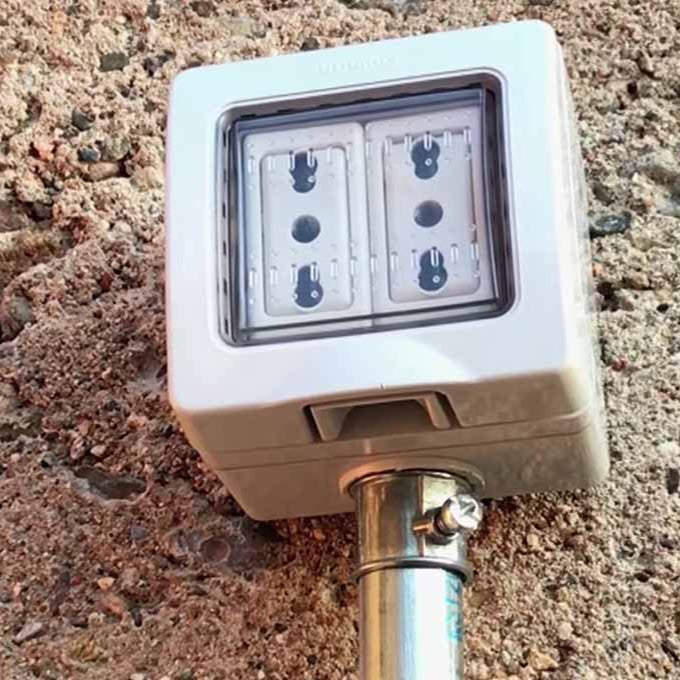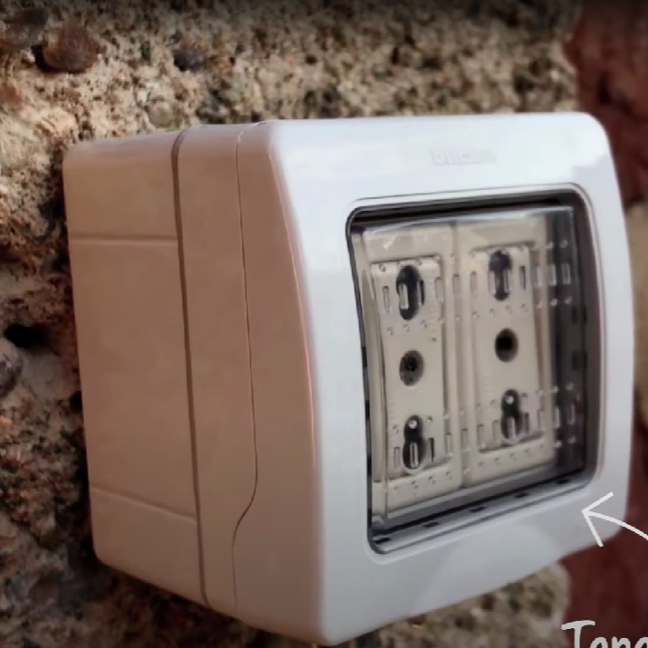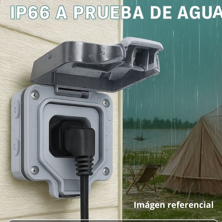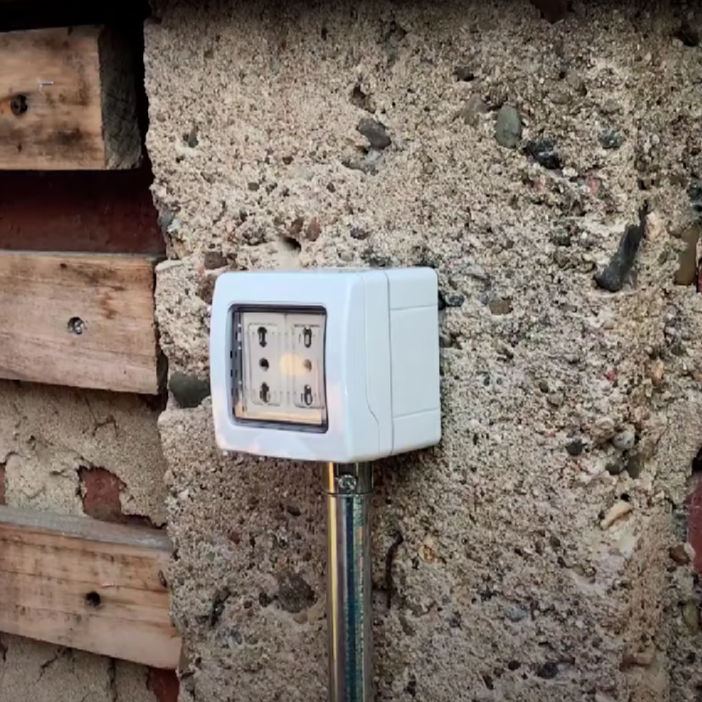 En este caso, se instala un enchufe sobrepuesto Hidrobox , diseñado para resistir condiciones de humedad ambiental sin estar en contacto directo con la lluvia. La combinación de EMT a la vista con un Hidrobox garantiza seguridad eléctrica, facilidad de mantenimiento y estética en la instalación .