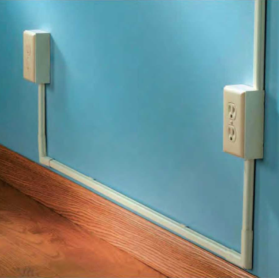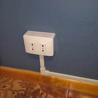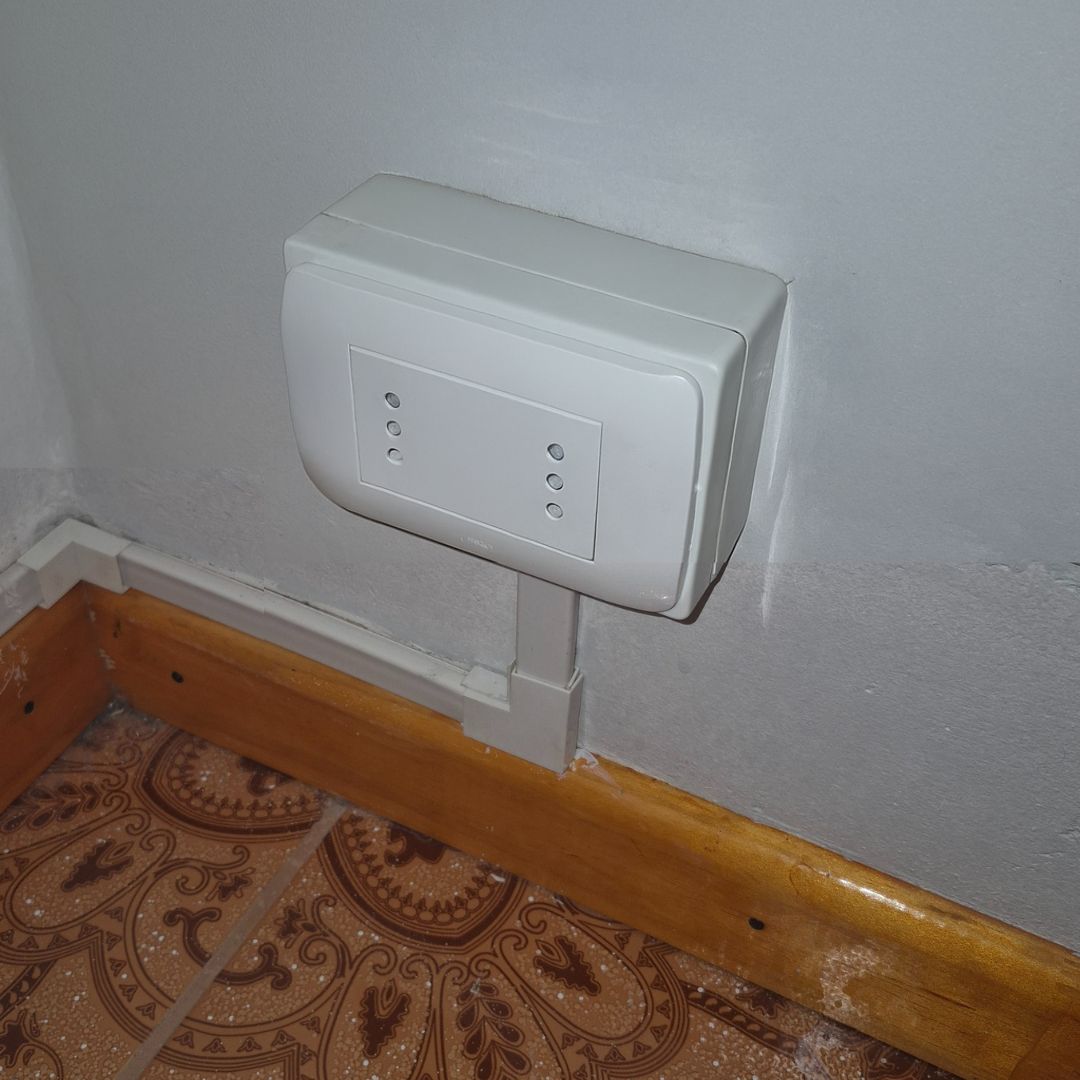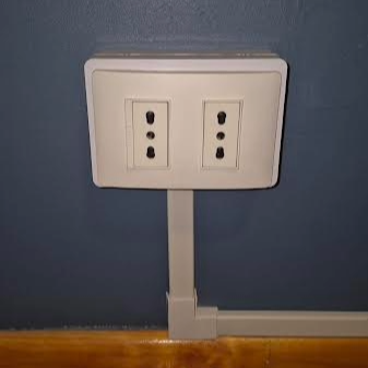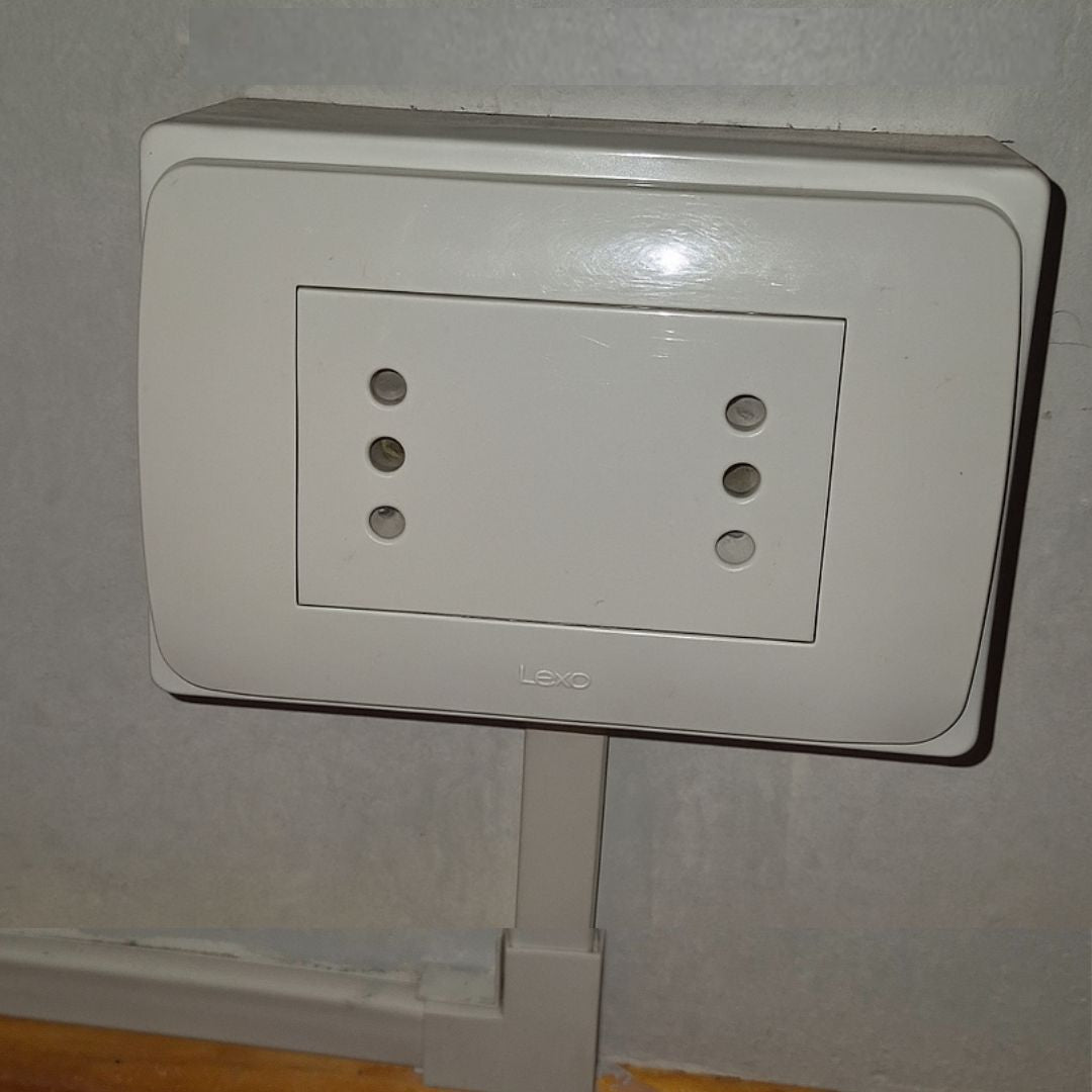 La instalación eléctrica a la vista incluye un enchufe doble o triple con canaleta adhesiva blanca (o similar), considerando hasta 5 metros lineales desde la caja de distribución hasta el enchufe. Este sistema es práctico y estético, ya que evita romper muros al llevar los cables por canaletas visibles, lo que permite una instalación rápida, fácil de mantener y sin obras mayores.